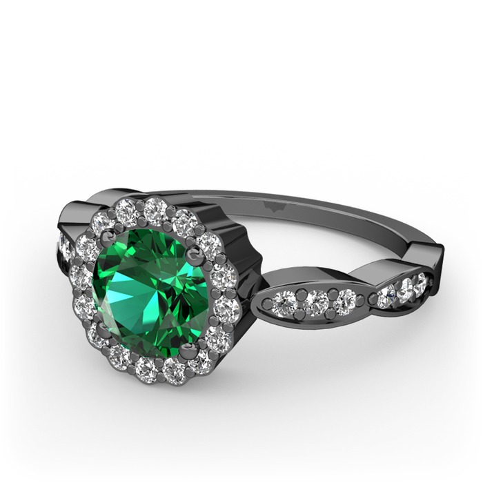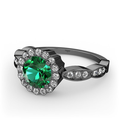 Yeşil kuvars ve pırlanta 925 ayar siyah rodyum kaplama gümüş yüzük (0.308 karat)