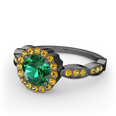 Yeşil kuvars ve sitrin 925 ayar siyah rodyum kaplama gümüş yüzük