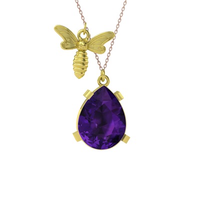 Ametist 14 ayar altın kolye (40 cm rose altın rolo zincir)