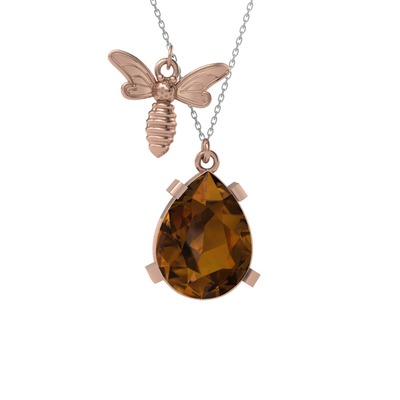 Dumanlı kuvars 14 ayar rose altın kolye (40 cm beyaz altın rolo zincir)