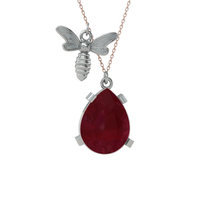 Kök yakut 14 ayar beyaz altın kolye (40 cm gümüş rolo zincir)