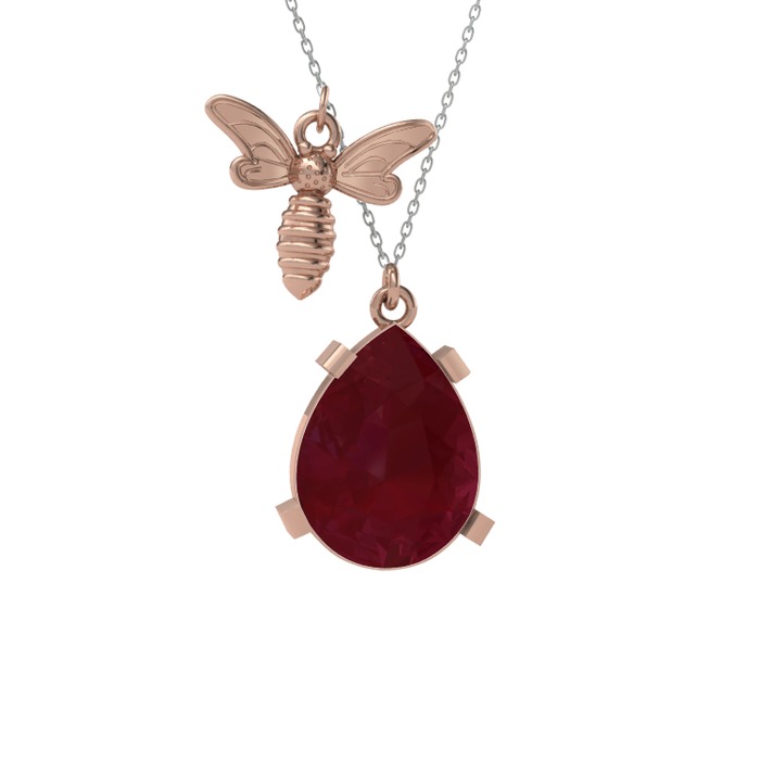 Kök yakut 14 ayar rose altın kolye (40 cm beyaz altın rolo zincir)