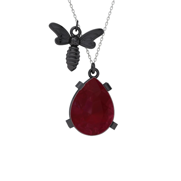 Kök yakut 925 ayar siyah rodyum kaplama gümüş kolye (40 cm beyaz altın rolo zincir)
