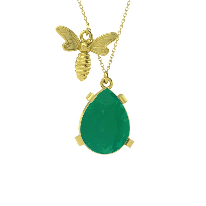 Kök zümrüt 18 ayar altın kolye (40 cm gümüş rolo zincir)