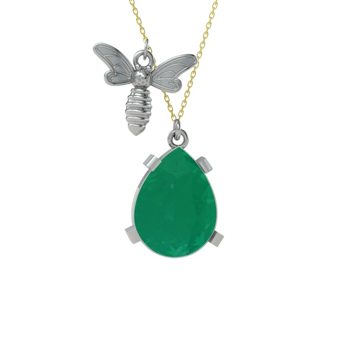 Kök zümrüt 8 ayar beyaz altın kolye (40 cm altın rolo zincir)