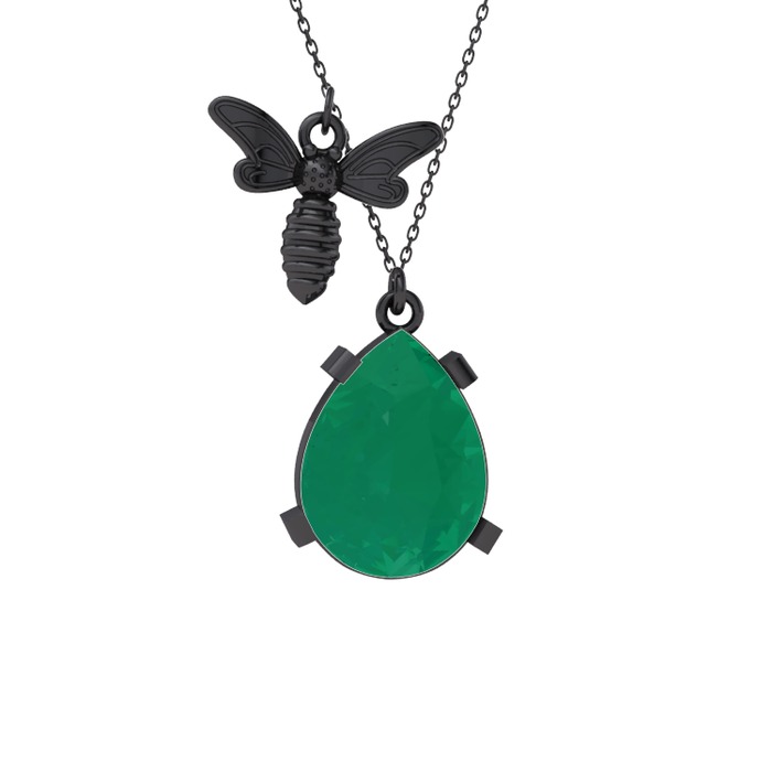 Kök zümrüt 925 ayar siyah rodyum kaplama gümüş kolye (40 cm gümüş rolo zincir)