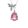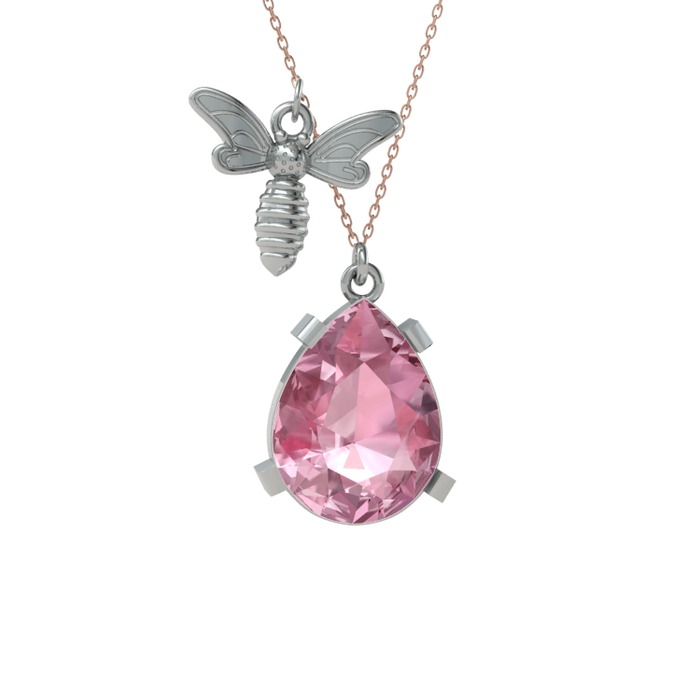 Pembe kuvars 14 ayar beyaz altın kolye (40 cm rose altın rolo zincir)