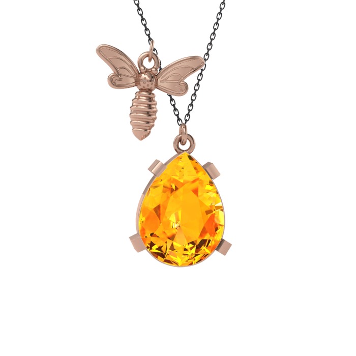 Sitrin 14 ayar rose altın kolye (40 cm gümüş rolo zincir)