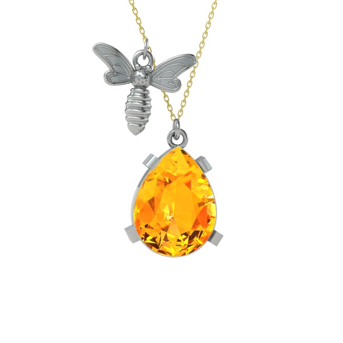 Sitrin 8 ayar beyaz altın kolye (40 cm gümüş rolo zincir)
