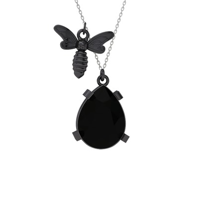 Siyah zirkon 925 ayar siyah rodyum kaplama gümüş kolye (40 cm gümüş rolo zincir)