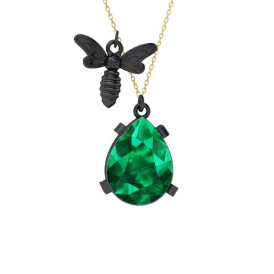 Yeşil kuvars 925 ayar siyah rodyum kaplama gümüş kolye (40 cm altın rolo zincir)