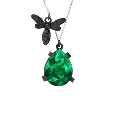Yeşil kuvars 925 ayar siyah rodyum kaplama gümüş kolye (40 cm gümüş rolo zincir)