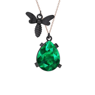 Yeşil kuvars 925 ayar siyah rodyum kaplama gümüş kolye (40 cm rose altın rolo zincir)