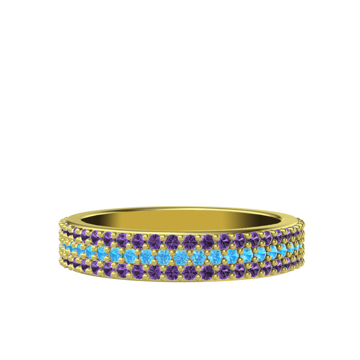 Akuamarin ve ametist 14 ayar altın yüzük