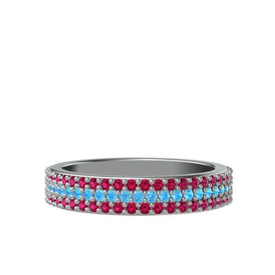 Akuamarin ve rodolit garnet 18 ayar beyaz altın yüzük