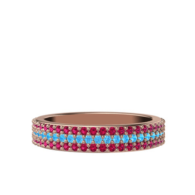Akuamarin ve rodolit garnet 925 ayar rose altın kaplama gümüş yüzük