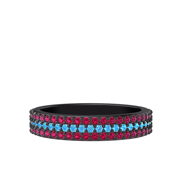 Akuamarin ve rodolit garnet 925 ayar siyah rodyum kaplama gümüş yüzük