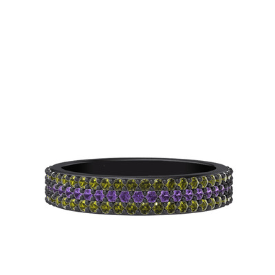 Ametist ve peridot 925 ayar siyah rodyum kaplama gümüş yüzük