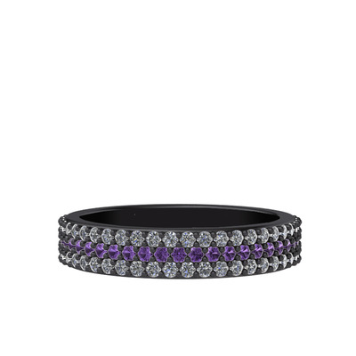 Ametist ve swarovski 925 ayar siyah rodyum kaplama gümüş yüzük