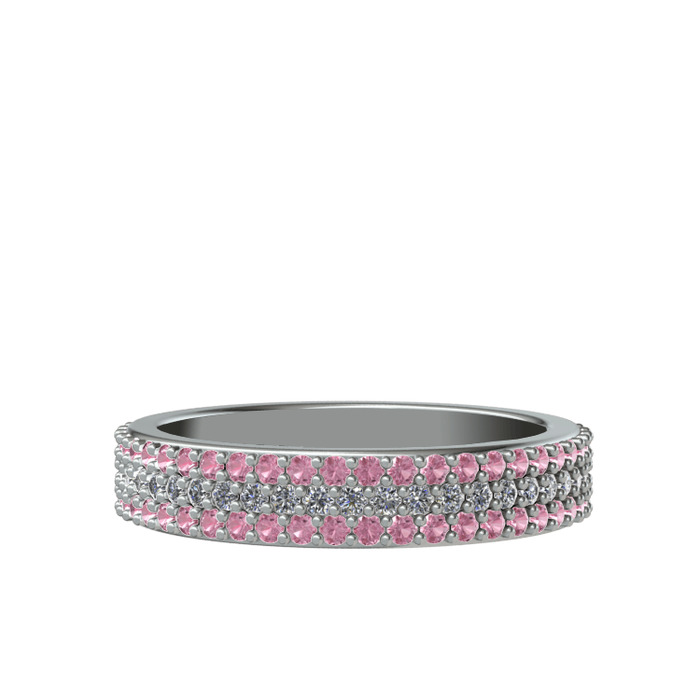 Beyaz zirkon ve pembe kuvars 18 ayar beyaz altın yüzük