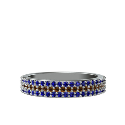Dumanlı kuvars ve lab safir 8 ayar beyaz altın yüzük