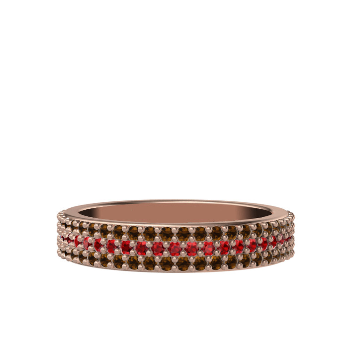 Garnet ve dumanlı kuvars 18 ayar rose altın yüzük