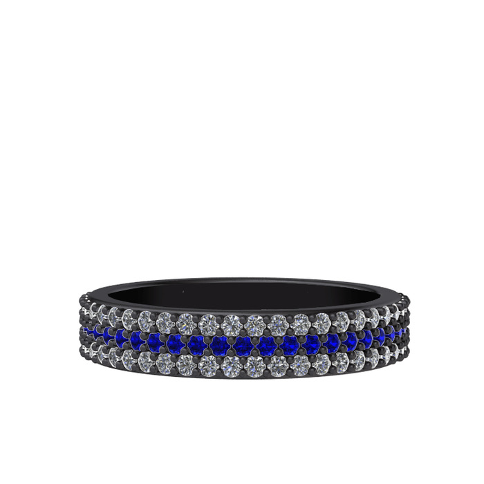 Lab safir ve swarovski 925 ayar siyah rodyum kaplama gümüş yüzük