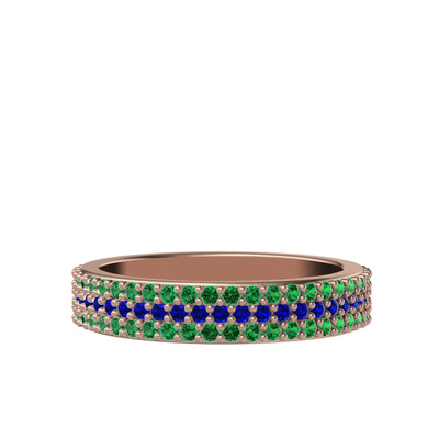 Lab safir ve yeşil kuvars 925 ayar rose altın kaplama gümüş yüzük