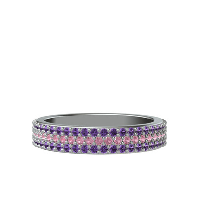Pembe kuvars ve ametist 14 ayar beyaz altın yüzük