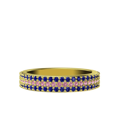 Pembe kuvars ve lab safir 14 ayar altın yüzük
