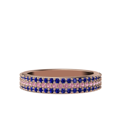 Pembe kuvars ve lab safir 925 ayar rose altın kaplama gümüş yüzük