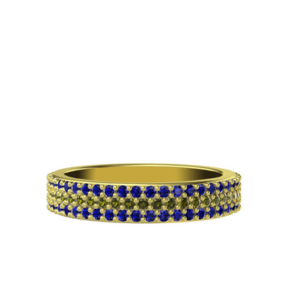 Peridot ve lab safir 925 ayar altın kaplama gümüş yüzük