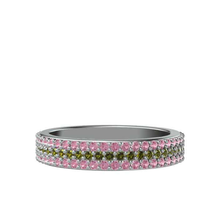 Peridot ve pembe kuvars 8 ayar beyaz altın yüzük