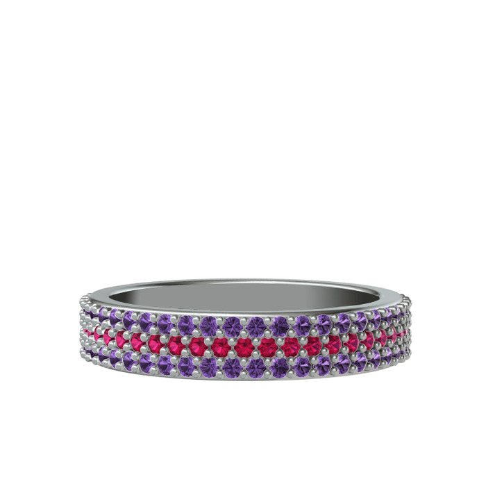 Rodolit garnet ve ametist 8 ayar beyaz altın yüzük