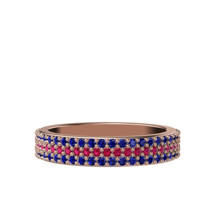 Rodolit garnet ve lab safir 925 ayar rose altın kaplama gümüş yüzük