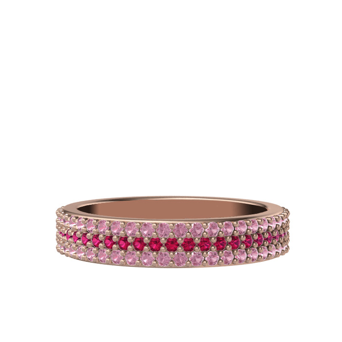 Rodolit garnet ve pembe kuvars 14 ayar rose altın yüzük
