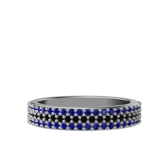 Siyah zirkon ve lab safir 8 ayar beyaz altın yüzük