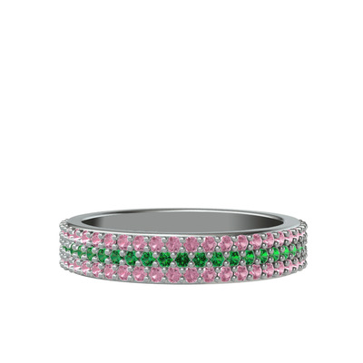 Yeşil kuvars ve pembe kuvars 8 ayar beyaz altın yüzük