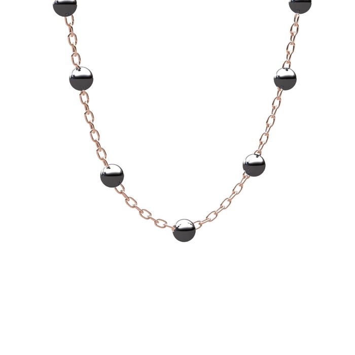 925 ayar siyah rodyum kaplama gümüş kolye (40 cm rose altın rolo zincir)