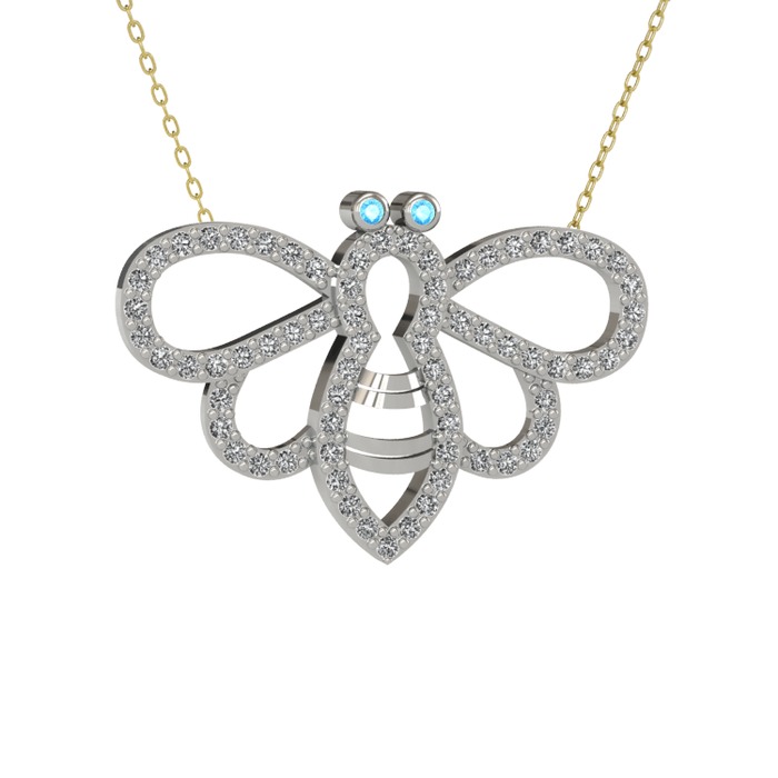 Akuamarin ve beyaz zirkon 925 ayar gümüş kolye (40 cm altın rolo zincir)