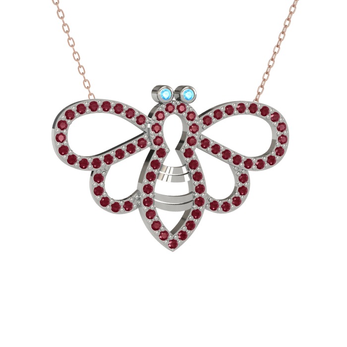 Akuamarin ve kök zümrüt 18 ayar beyaz altın kolye (40 cm rose altın rolo zincir)
