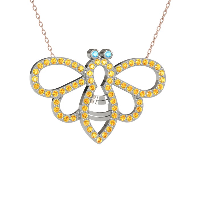 Akuamarin ve sitrin 18 ayar beyaz altın kolye (40 cm gümüş rolo zincir)