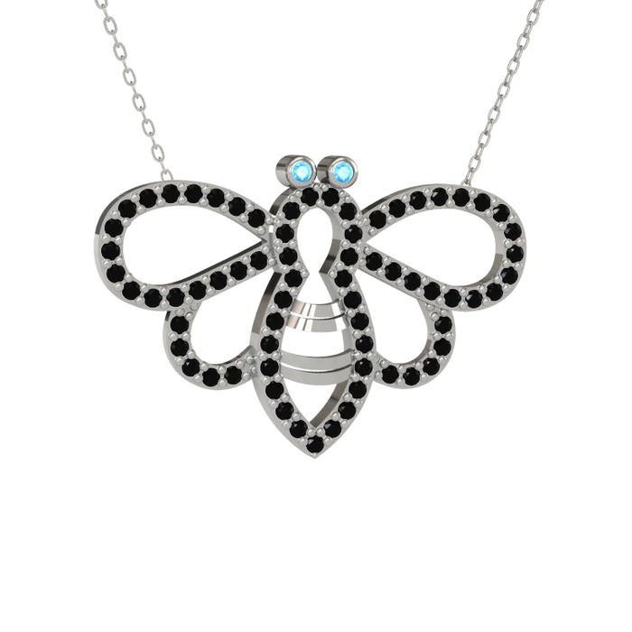 Akuamarin ve siyah zirkon 925 ayar gümüş kolye (40 cm beyaz altın rolo zincir)