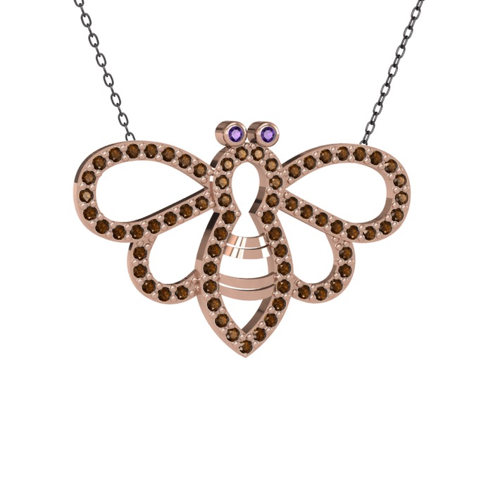 Ametist ve dumanlı kuvars 18 ayar rose altın kolye (40 cm gümüş rolo zincir)