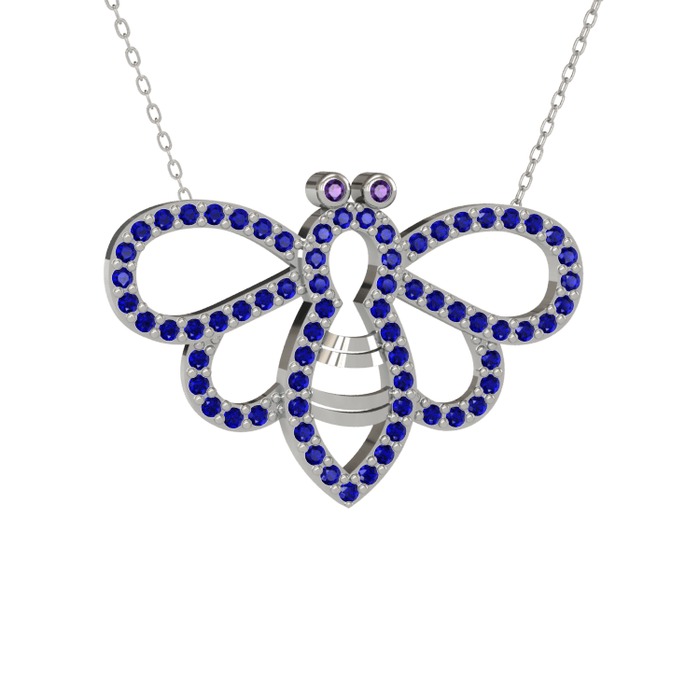 Ametist ve lab safir 8 ayar beyaz altın kolye (40 cm beyaz altın rolo zincir)