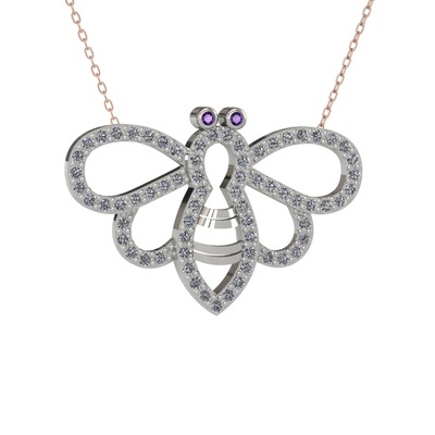 Ametist ve pırlanta 8 ayar beyaz altın kolye (0.737 karat, 40 cm rose altın rolo zincir)