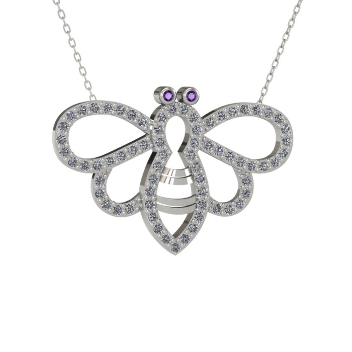 Ametist ve pırlanta 925 ayar gümüş kolye (0.737 karat, 40 cm beyaz altın rolo zincir)