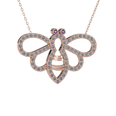 Ametist ve pırlanta 925 ayar rose altın kaplama gümüş kolye (0.737 karat, 40 cm rose altın rolo zincir)
