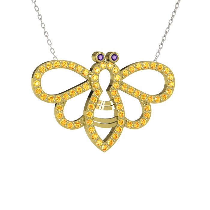 Ametist ve sitrin 14 ayar altın kolye (40 cm gümüş rolo zincir)
