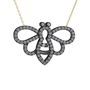 Beyaz zirkon ve pırlanta 925 ayar siyah rodyum kaplama gümüş kolye (0.737 karat, 40 cm gümüş rolo zincir)